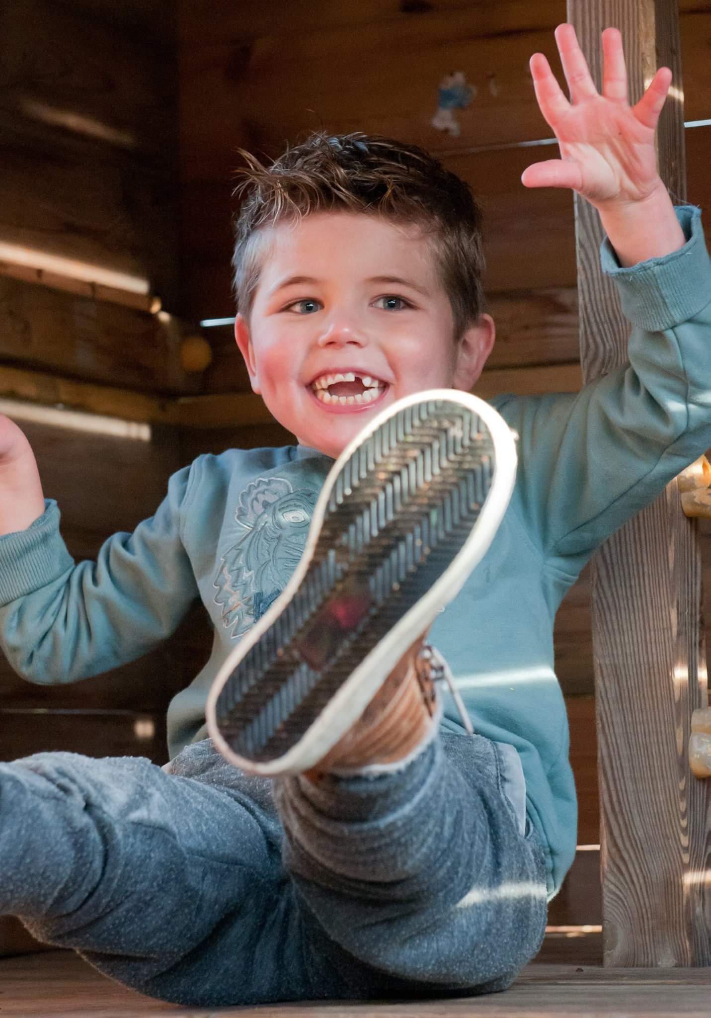 Zitten lukte uiteindelijk ook, evenals kruipen. Lopen bleek echter een stuk lastiger, logisch. Morris was 2,5 jaar toen dat na een hoop bloed, zweet en tranen lukte. Wat een geluk! Een enorme stap, Morris kon de wereld gaan ontdekken. Hij liep en loopt nog steeds niet heel makkelijk. Stijfjes, instabiel en hij heeft moeite om hoogteverschillen in te schatten. Morris struikelt dan ook vaak helaas, over drempels en verhogingen. Zijn pijngrens ligt door zijn sensomotorische beperking erg hoog, dus hij lijkt er weinig van te hebben als hij valt. Een geluk bij een ongeluk. 😉