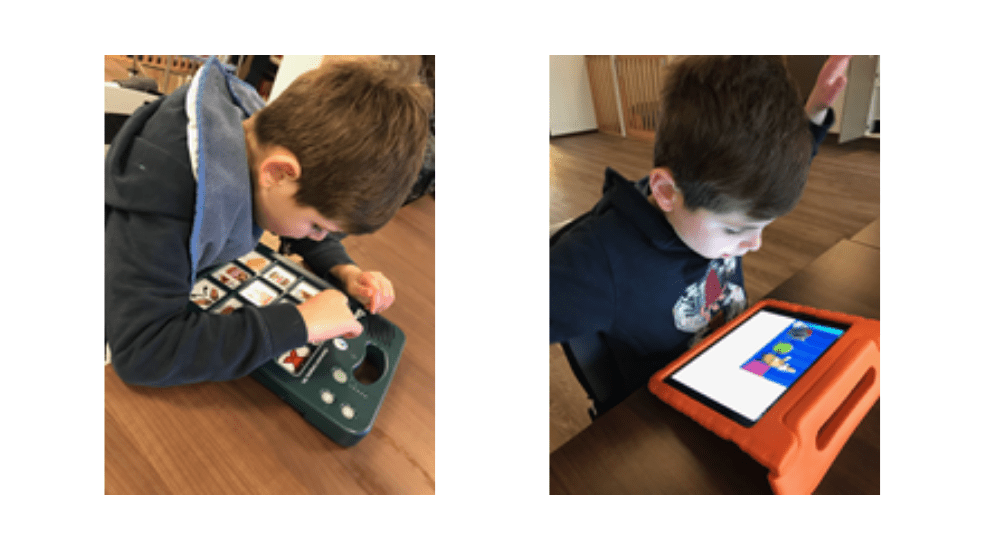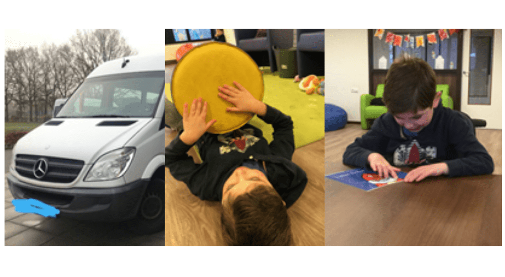 Vervolgens kan hij heerlijk genieten van een glaasje drinken en een lekker stuk fruit, dit kan hij al geheel zelfstandig kiezen doormiddel van de Go Talk. Na het eetmoment gaat hij samen met een therapeut 1 op 1 werken, logopedie, onderwijs of fysio. Dit krijgt hij allemaal binnen KDC de Heisterkes aangeboden. Dan is het de hoogste tijd voor een activiteit. We kiezen altijd om een moment naar buiten te gaan, wandelen, fietsen of in de tuin buiten spelen. Morris vindt het dan ook fijn om even een frisse neus te halen en is maar al te graag buiten te vinden. Wanneer het slecht weer is maken we ook vaker muziek met de instrumenten, we krijgen dan een mooi concert aangeboden van onze Morris. Regelmatig maken we een bommetje in ons zwembad!