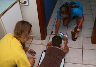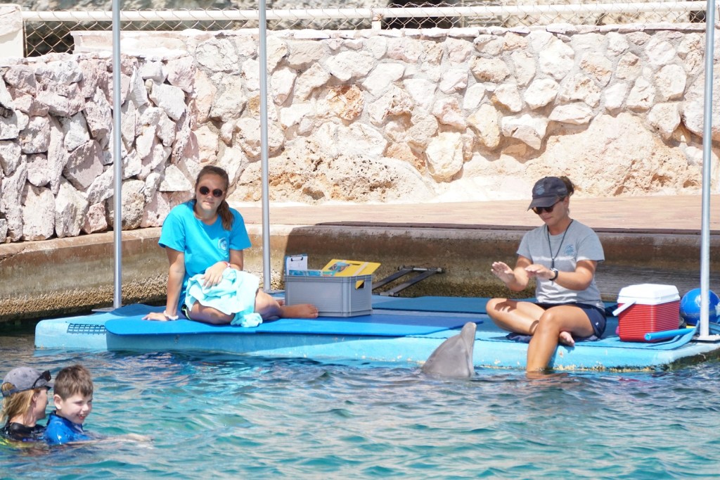 Binnen gingen Babette en Marie meteen aan de slag met Morris. Diverse therapeutische oefeningen werden gedaan om Morris te observeren. Dit varieerde van fysieke handelingen, tot spelsituaties en lichaamsmassages. Daarna werd Morris omgekleed en klaargemaakt voor het zwemmen met Chabelita, de persoonlijk aan Morris toegewezen dolfijn voor de komende 2 weken!