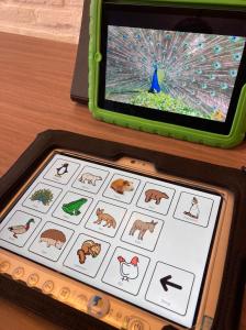 Gelukkig ging de Heikei na 2 maanden weer open en werden de therapie, begeleiding en het onderwijs beetje bij beetje weer opgepakt. En toen ging het hard. Morris bleek enorme vorderingen te maken. Hij heeft veel meer rust, kan zich beter en langer concentreren en daardoor gerichter keuzes maken, wat leidt tot veel meer tevredenheid en enorme groei. Heel concreet kan hij natuurlijk ja-knikken, wat hem steeds beter afgaat. Ook kan hij nu bijvoorbeeld kleuren herkennen en geluiden en foto’s matchen met dieren. Hij vindt het geweldig, vooral als we zelf de dieren nadoen uiteraard.-;) Ook kan hij opdrachten uitvoeren, zoals een parcours met kleine obstakels bij de fysiotherapeut.