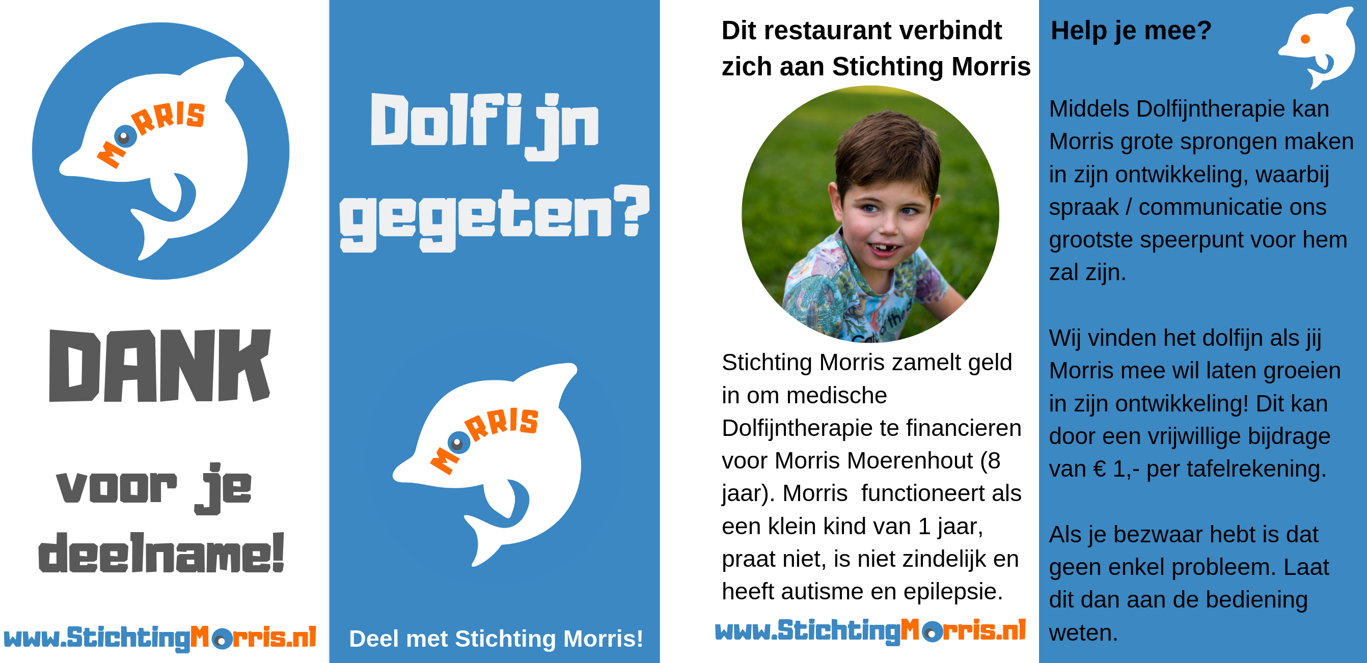 Bij de rekening kregen gasten onderstaand kaartje van Stichting Morris gepresenteerd. Onderstaande restaurants werkten mee aan deze actie.